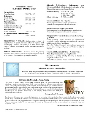 at the rectory. Please notify us of change of address. Związane z polską szkołą. Prosimy o kontakt z