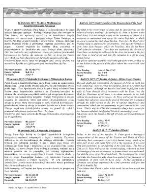 23 kwietnia 2017; 2 Niedziela Wielkanocy- Miłosierdzia Bożego April 23, 2017; 2 Sunday of Easter - Divine Mercy Sunday