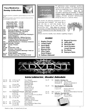 generous support of our Parish. miesiąca. (Prosimy sprawdzić harmonogram