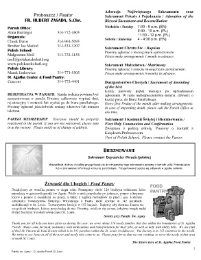 rejestracyjny i zostawić lub wysłać go do biura parafialnego. każdej porze do Biura Parafialnego.