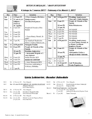 INTENCJE MSZALNE / MASS INTENTIONS