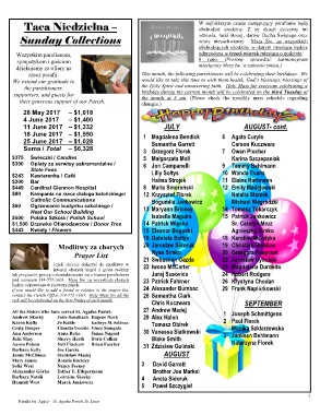 rzecz parafii. This month, the following parishioners will be celebrating their birthdays. We