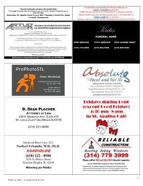 TO BECOME AN ADVERTISER OR SPONSOR, CONTACT THE ST. AGATHA PARISH OFFICE AT